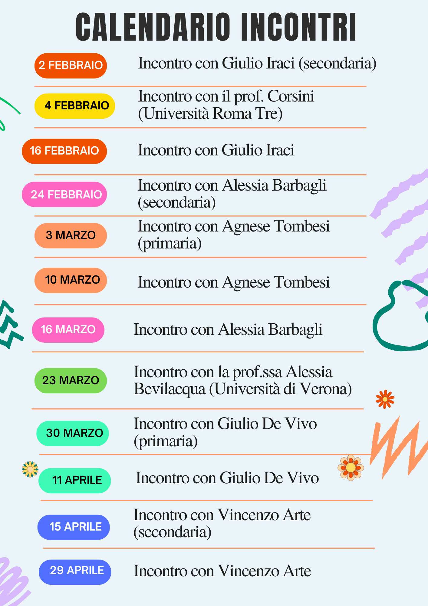 A partire da febbraio 2026 i docenti iscritti al gruppo di ricerca potranno incontrarsi online con Vincenzo Arte, Giulio Iraci, Alessia Barbagli (docenti di scuola secondaria), Giulio De Vivo e Agnese Tombesi (maestri di scuola primaria).